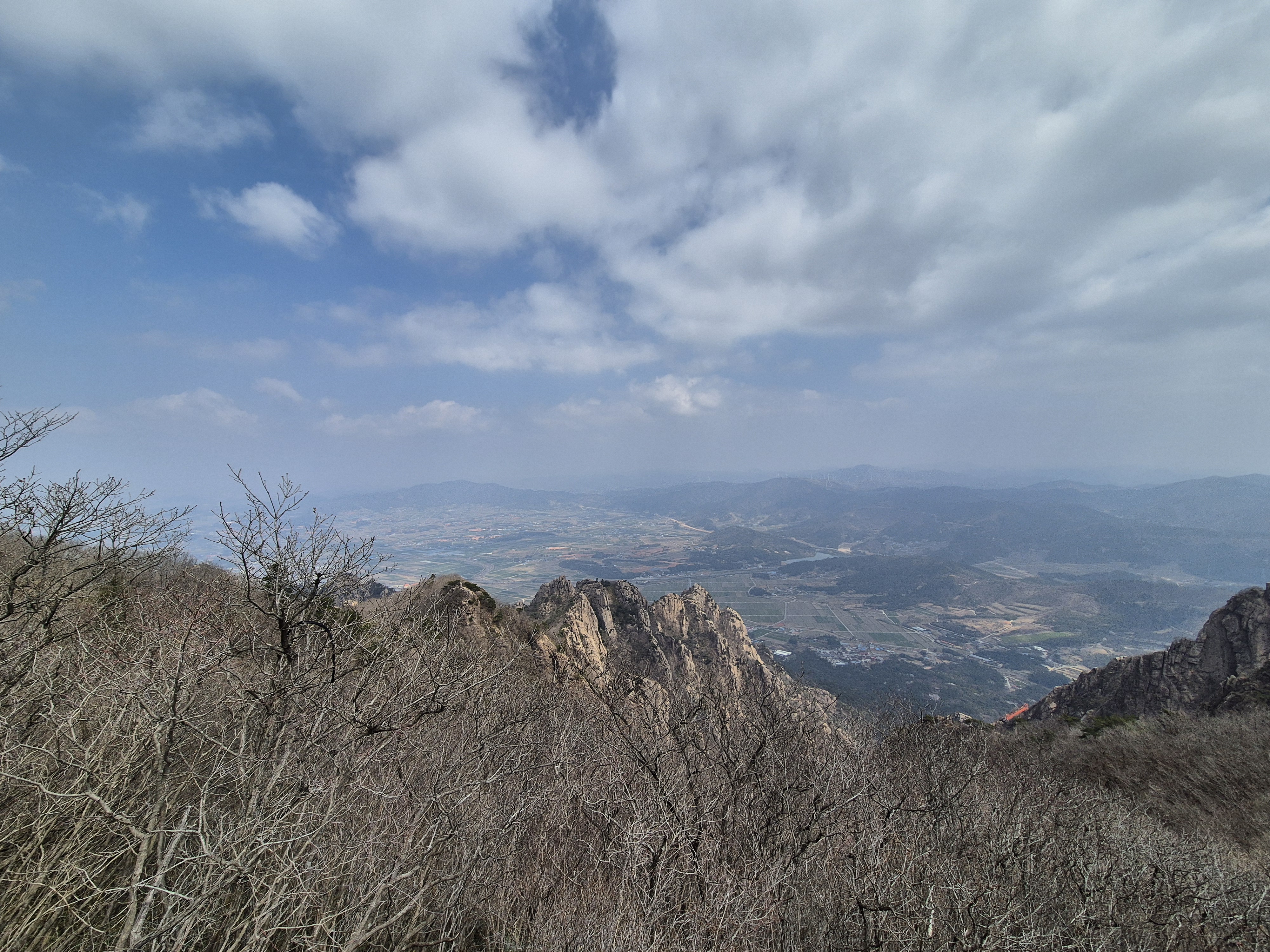 월출산 천황봉 정상, 정상에는 사람들이 제법 있다. 360 로 전망이 터지고, 서울의 북한산과 다르게, 높은건물은 없고, 나주평야가 한눈에 다 들어온다.. 대박... 이맛에 정상오는거지 머.. 날도 안춥고 바람도 그렇게 불지않아서 한동안 정상에 앉아서 간단히 요기하면서 눈에 이것저것 담아본다.