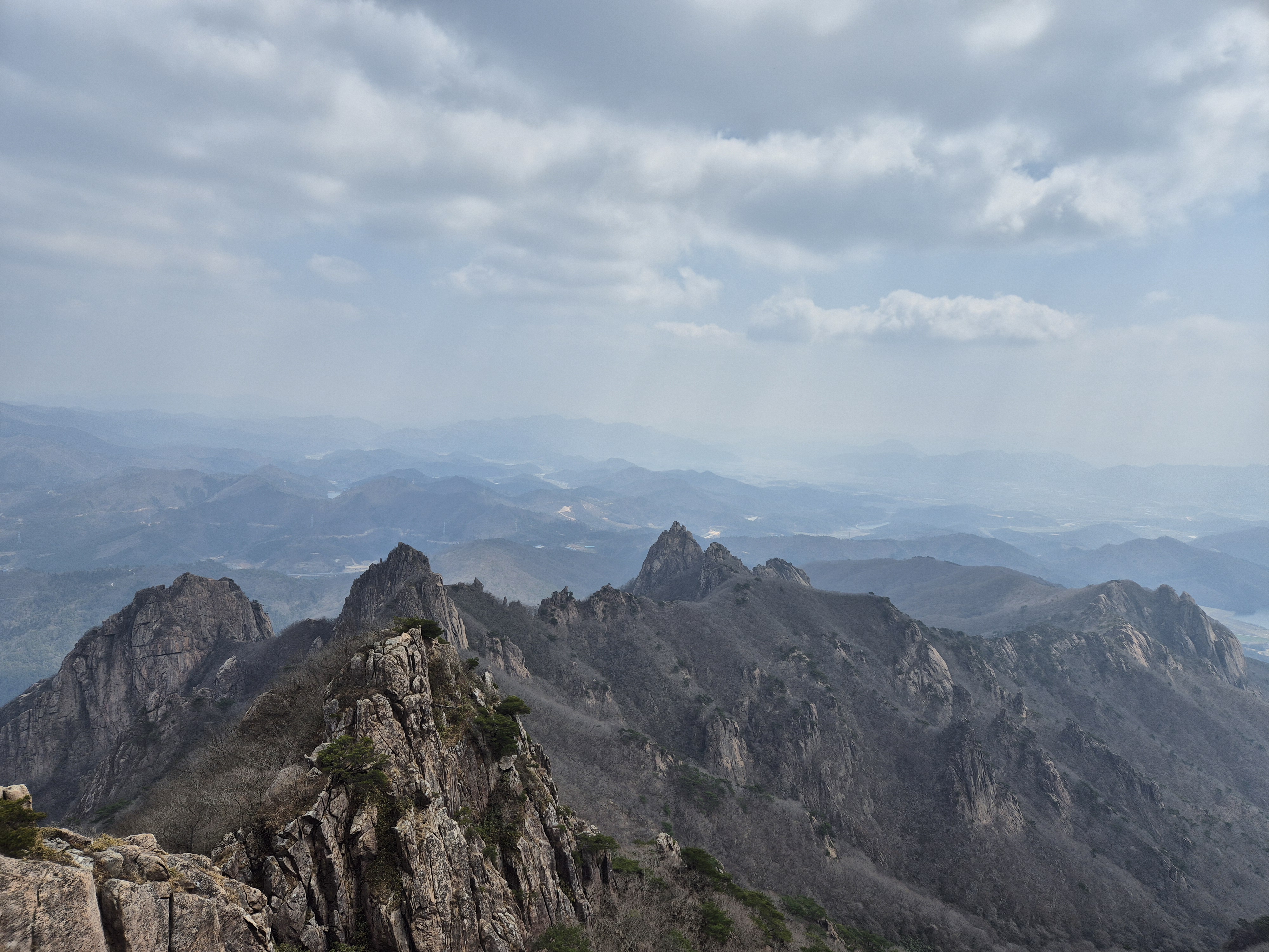 경포대 능선에 올랐다. 우측으로가면 월출산의 명소인 구름다리로 해서 오르는길이고, 좌측으로 500미터만 가면 천황봉이다. 능선이 좋은 이유는 조망이 사방으로 터진다는거다. 월출산도 예외는 아니어서 여기서부터 멋진 조망이 터진다. 환상이라고 해도 될까.. 오랫만에 보는 뷰다. 서울에 살기에 자주가는 북한산 조망도 끝내주지만, 여기 월출산에 비할바는 아닌듯싶다.. 멀리와서 더 그런걸까? ^^